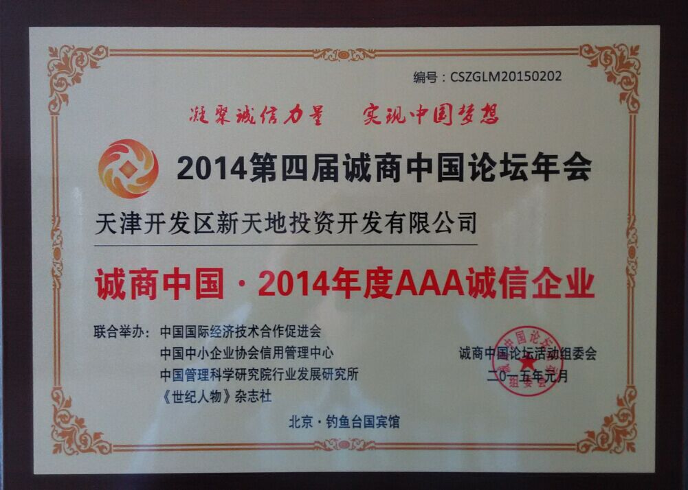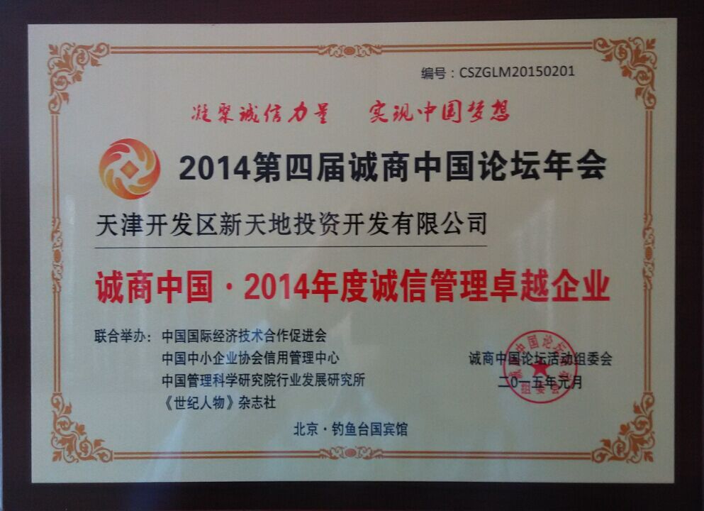 诚商中国▪2014年度AAA诚信企业 诚商中国▪2014年度诚信管理卓越企业